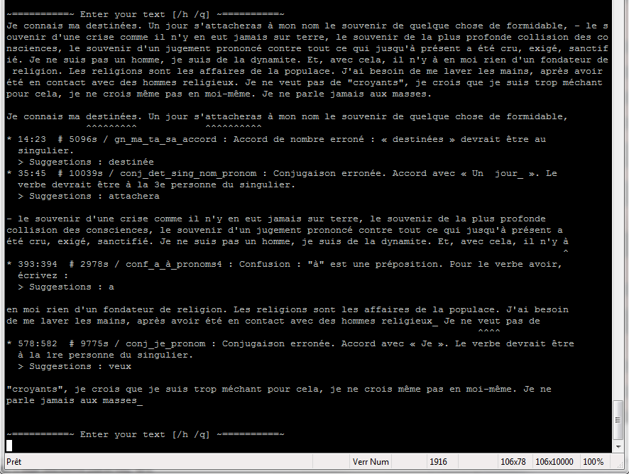 Grammalecte dispose d’un moteur grammatical qui, en interne, simplifie le texte au fur et à mesure pour détecter nombre d’erreurs diverses. En premier lieu, il examine le paragraphe et sa ponctuation, puis il le scinde en phrase.