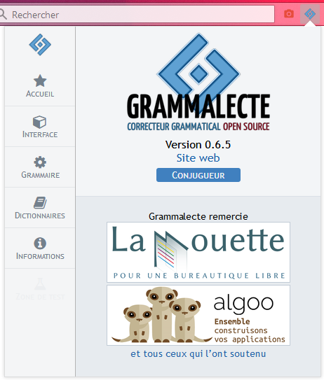 Grammalecte est un correcteur grammatical et typographique open source dédié à la langue française, pour Writer (LibreOffice, OpenOffice), Firefox & Thunderbird, Chrome, etc.
