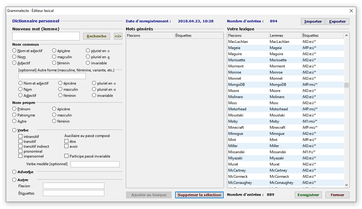 - l’étiquetage grammatical d’un mot est incorrect ou incomplet.